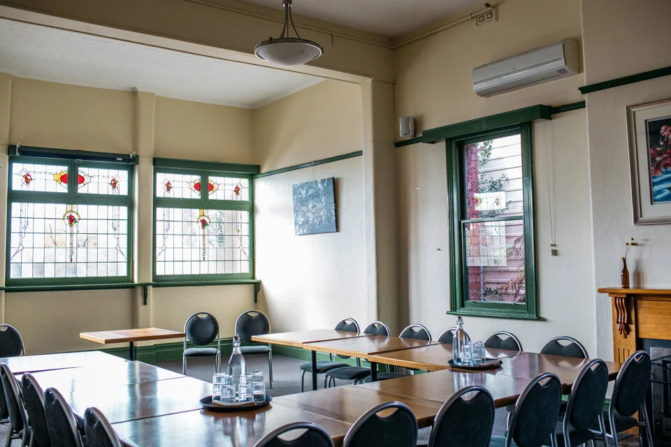 The Leadlight Room is ideal for seated meetings or workshops with its intimate, heritage feel.